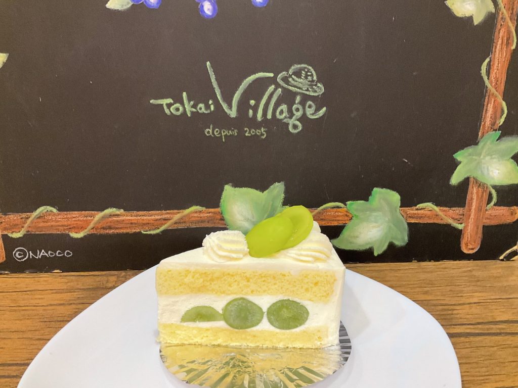 地元東海村産のシャインマスカットをふんだんに使用したショートケーキてす。