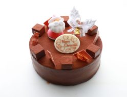 4400円ヘーゼルナッツムースとスイートチョコムースを、きめの細かいチョコスポンジで包み、ガナッシュクリーム、ミルクチョコでコーティングしています。チョコソースがアクセントになっています。